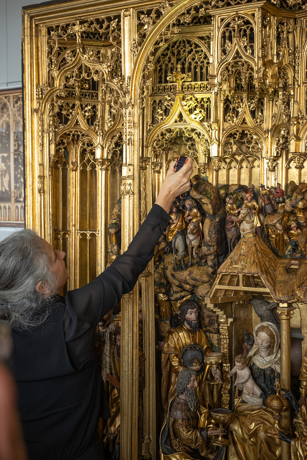 This medieval masterpiece has undergone meticulous restoration, revealing treasures hidden for centuries beneath the thick brown varnish and dust. The subtle details and colours give the impression that the figures are coming to life before our eyes. The team of restorers faced many challenges. The complexity of the work lies in the fact that each surface of the altarpiece is different, requiring constant adaptation of the restoration method.